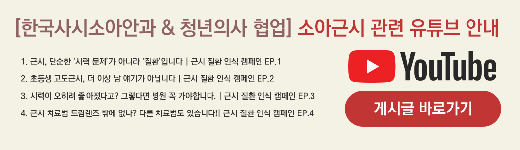 - [한국사시소아안과 & 청년의사 협업] 소아근시 관련 유튜브 소개